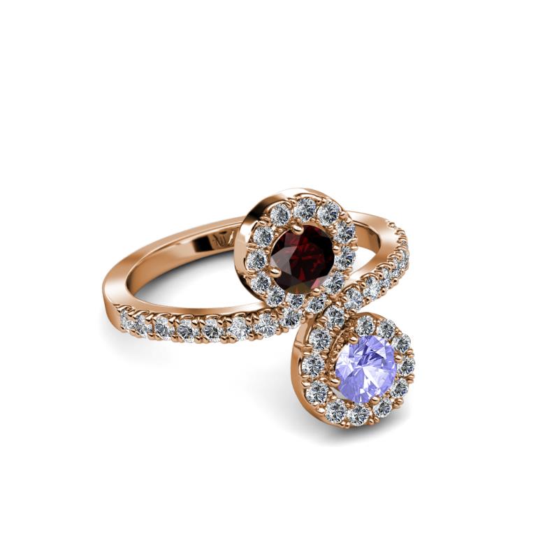 Tanzanite and Red Garnet 2 Stone with Side Diamonds Womens Bypass Engagement Ring 1.24 ctw 14K Rose Gold More Details ...