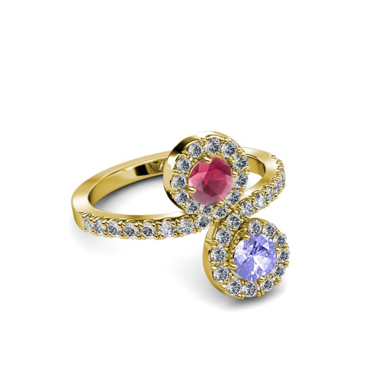 Tanzanite and Rhodolite Garnet 2 Stone with Side Diamonds Womens Bypass Engagement Ring 1.24 ctw 14K Yellow Gold More Details ...