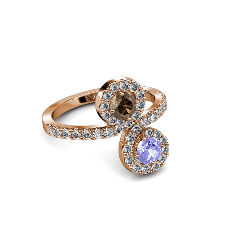 Tanzanite and Smoky Quartz 2 Stone with Side Diamonds Womens Bypass Engagement Ring 1.17 ctw 14K Rose Gold More Details ...