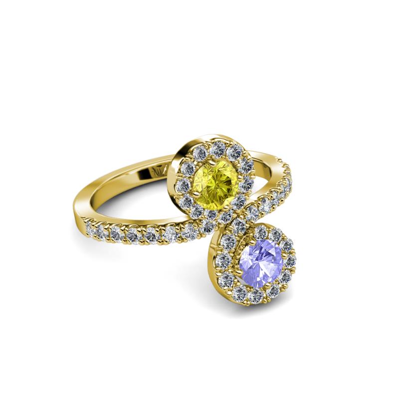 Tanzanite and Yellow Diamond 2 Stone with Side Diamonds Womens Bypass Engagement Ring 1.19 ctw 14K Yellow Gold More Details ...