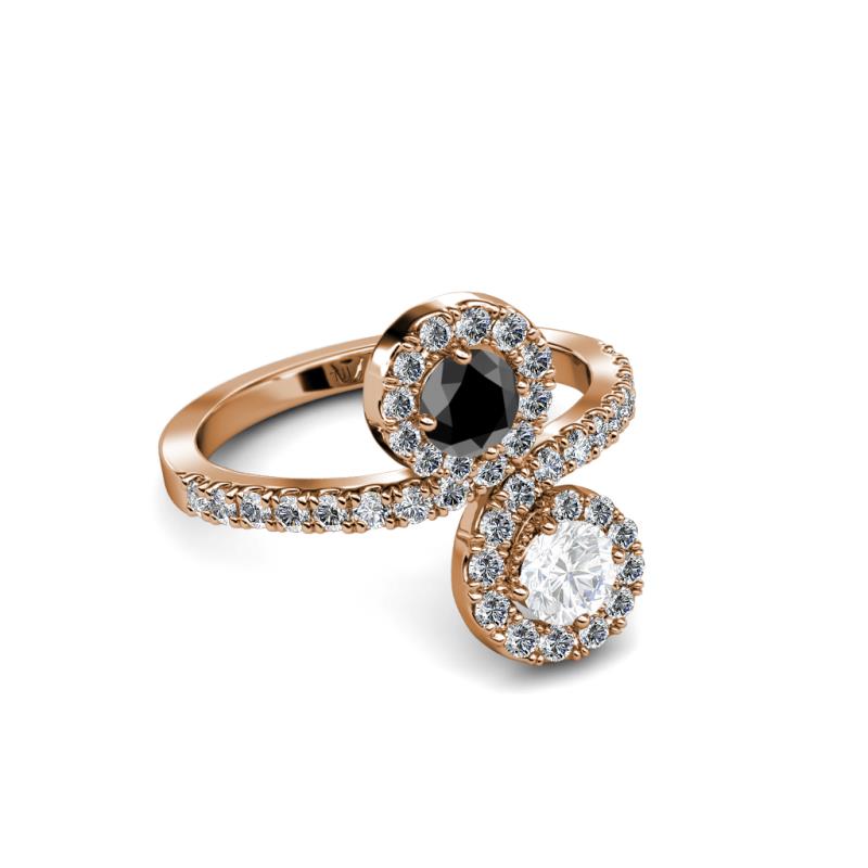 White Sapphire and Black Diamond 2 Stone with Side Diamonds Womens Bypass Engagement Ring 1.27 ctw 14K Rose Gold More Details ...