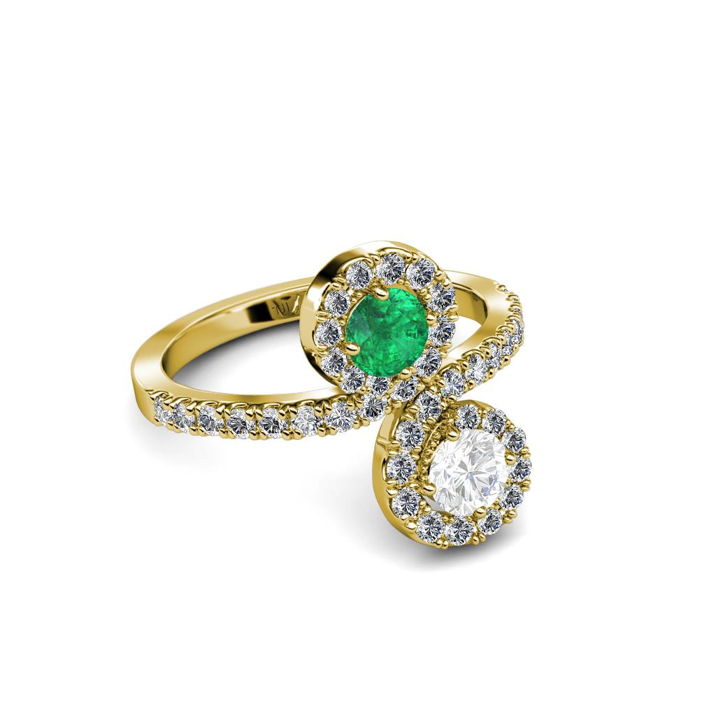 White Sapphire and Emerald 2 Stone with Side Diamonds Womens Bypass Engagement Ring 1.23 ctw 14K Yellow Gold More Details ...