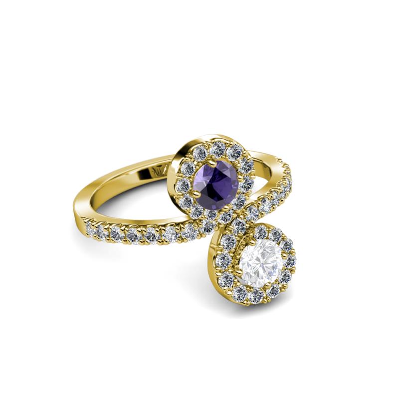 White Sapphire and Iolite 2 Stone with Side Diamonds Womens Bypass Engagement Ring 1.23 ctw 14K Yellow Gold More Details ...