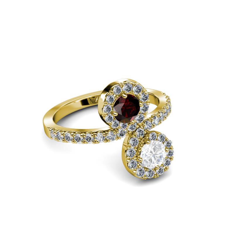 White Sapphire and Red Garnet 2 Stone with Side Diamonds Womens Bypass Engagement Ring 1.27 ctw 14K Yellow Gold More Details ...
