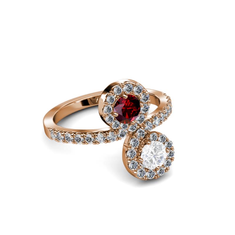 White Sapphire and Ruby 2 Stone with Side Diamonds Womens Bypass Engagement Ring 1.24 ctw 14K Rose Gold More Details ...