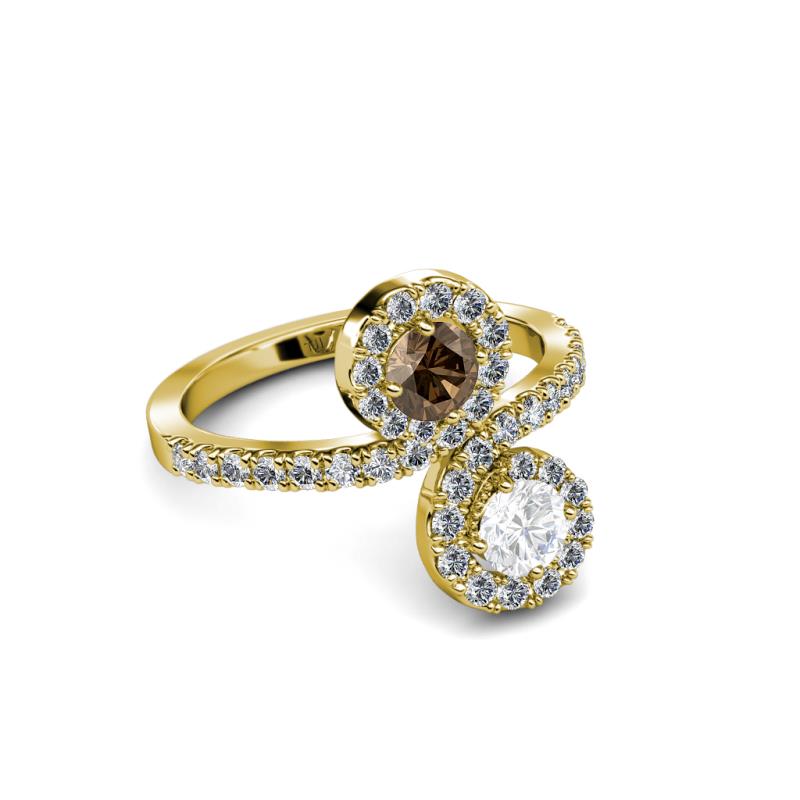 White Sapphire and Smoky Quartz 2 Stone with Side Diamonds Womens Bypass Engagement Ring 1.20 ctw 14K Yellow Gold More Details ...