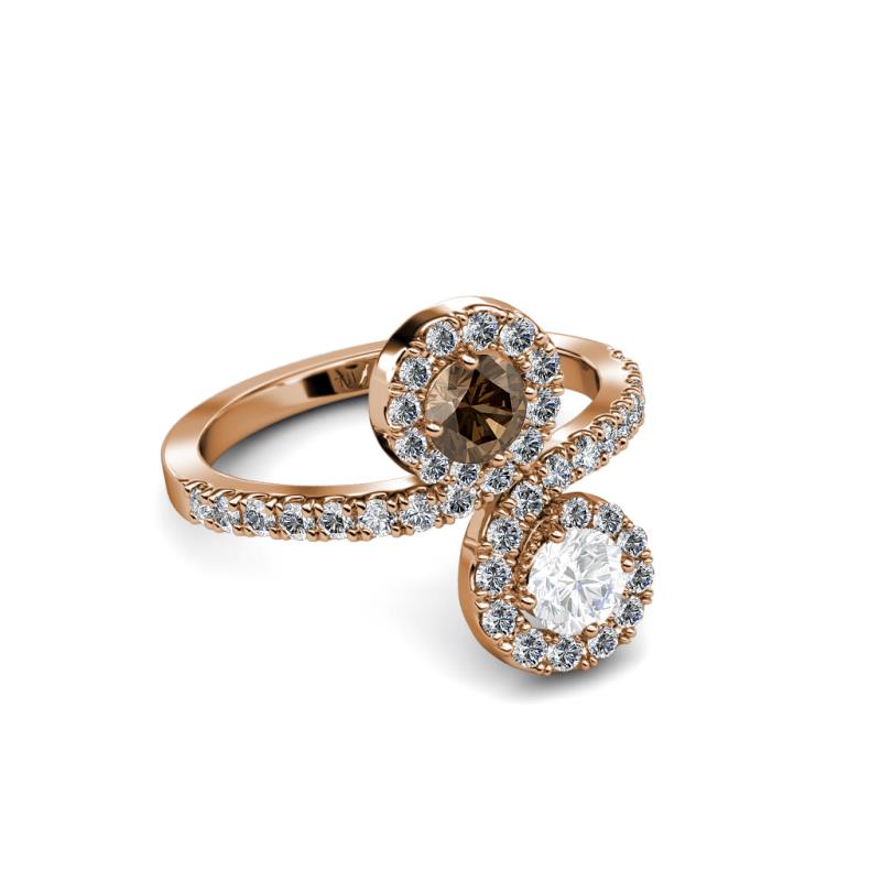 White Sapphire and Smoky Quartz 2 Stone with Side Diamonds Womens Bypass Engagement Ring 1.20 ctw 14K Rose Gold More Details ...