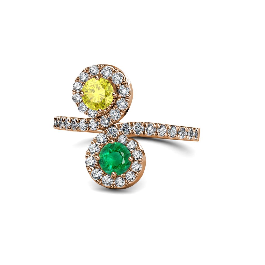 Yellow Diamond and Emerald 2 Stone with Side Diamonds Womens Bypass Engagement Ring 1.22 ctw 14K Rose Gold More Details ...