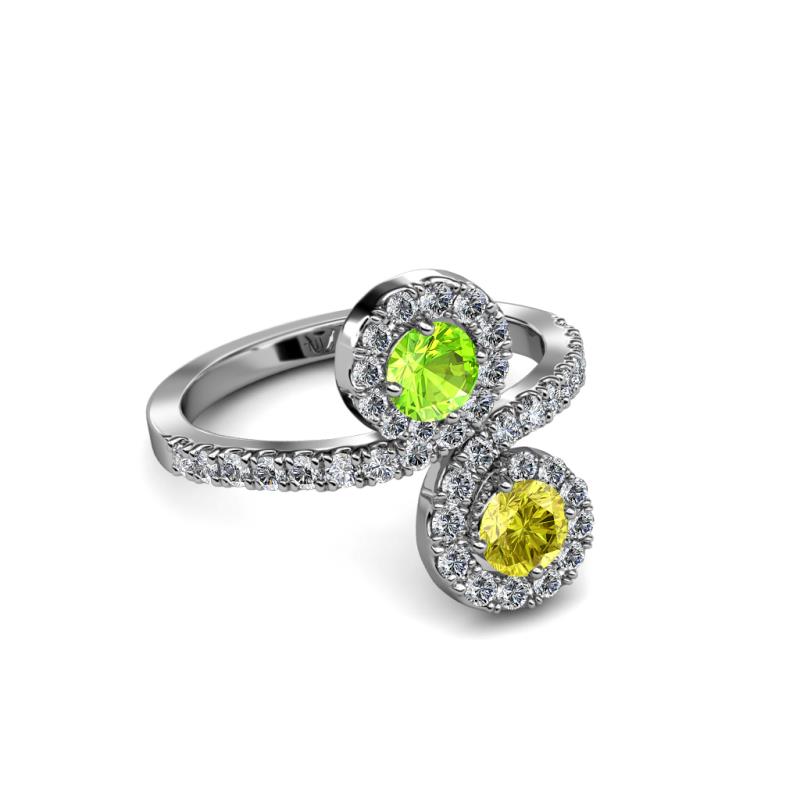 Yellow Diamond and Peridot 2 Stone with Side Diamonds Womens Bypass Engagement Ring 1.25 ctw 14K White Gold More Details ...