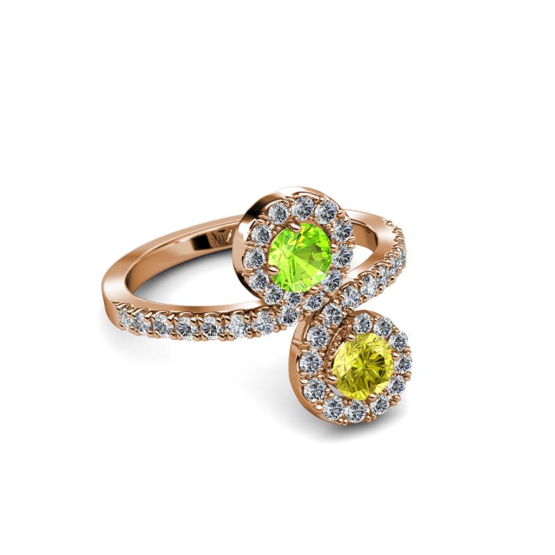 Yellow Diamond and Peridot 2 Stone with Side Diamonds Womens Bypass Engagement Ring 1.25 ctw 14K Rose Gold More Details ...
