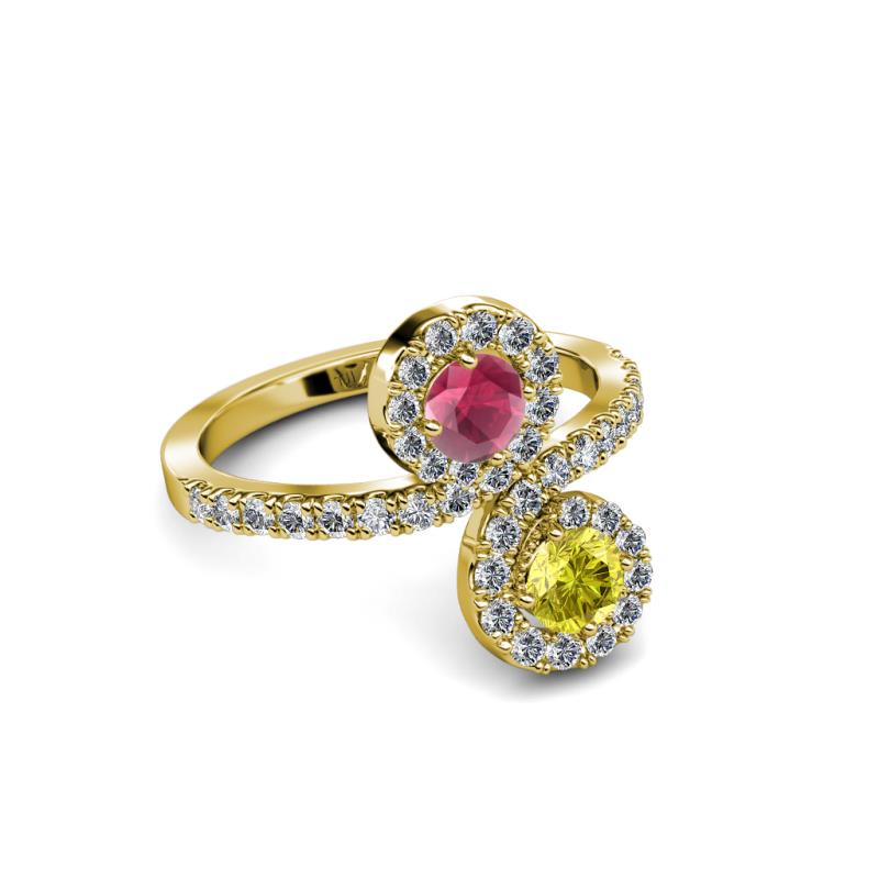 Yellow Diamond and Rhodolite Garnet 2 Stone with Side Diamonds Womens Bypass Engagement Ring 1.25 ctw 14K Yellow Gold More Details ...