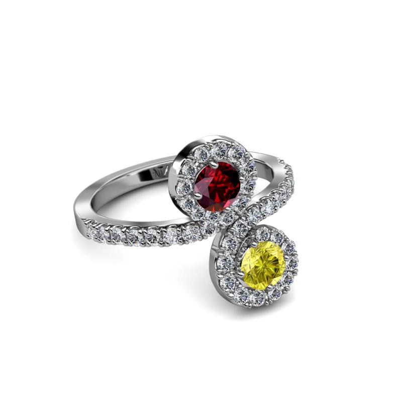 Yellow Diamond and Ruby 2 Stone with Side Diamonds Womens Bypass Engagement Ring 1.22 ctw 14K White Gold More Details ...