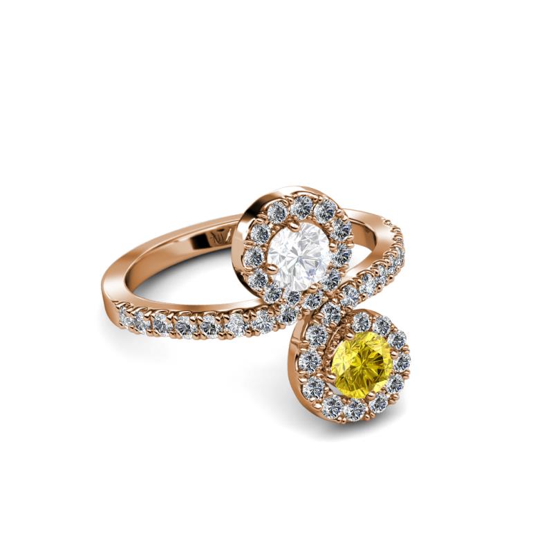 Yellow and White Sapphire 2 Stone with Side Diamonds Womens Bypass Engagement Ring 1.24 ctw 14K Rose Gold More Details ...