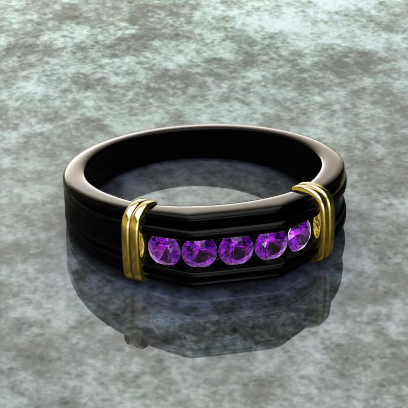 0.40 ctw Round 5 Amethyst (3 mm) using Channel setting Men Wedding Band in 14K Black Gold More Details ...