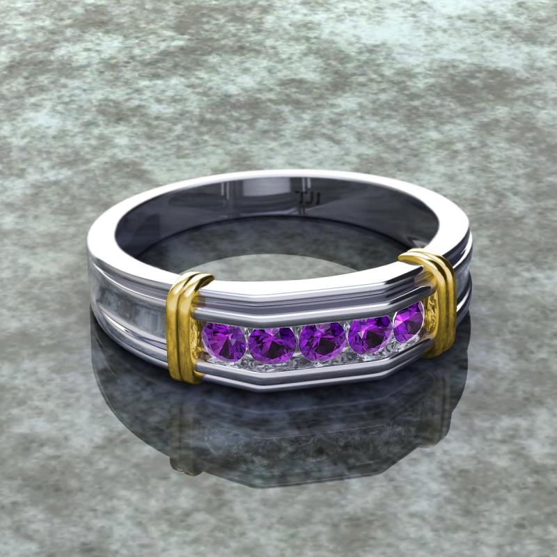 0.40 ctw Round 5 Amethyst (3 mm) using Channel setting Men Wedding Band in Sterling Silver More Details ...