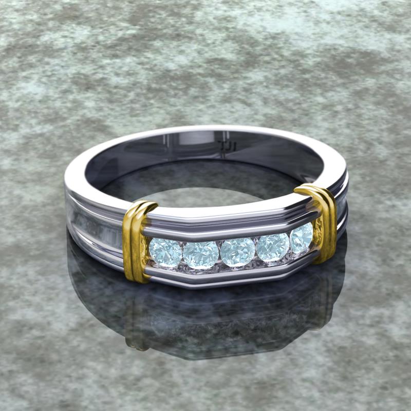 0.40 ctw Round 5 Aquamarine (3 mm) using Channel setting Men Wedding Band in 18K White Gold More Details ...
