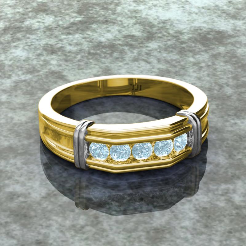 0.40 ctw Round 5 Aquamarine (3 mm) using Channel setting Men Wedding Band in 18K Yellow Gold More Details ...
