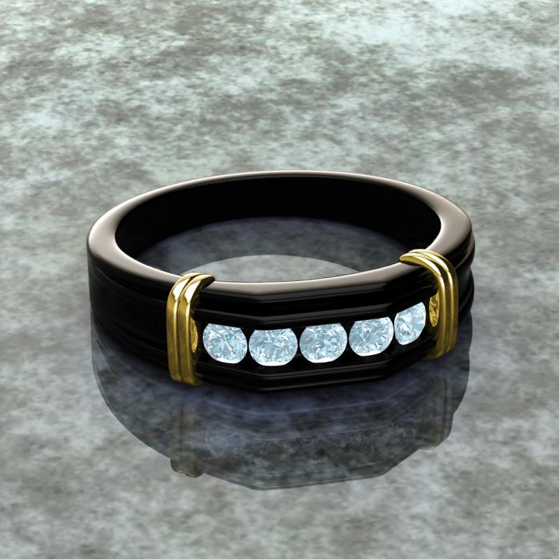 0.40 ctw Round 5 Aquamarine (3 mm) using Channel setting Men Wedding Band in 18K Black Gold More Details ...