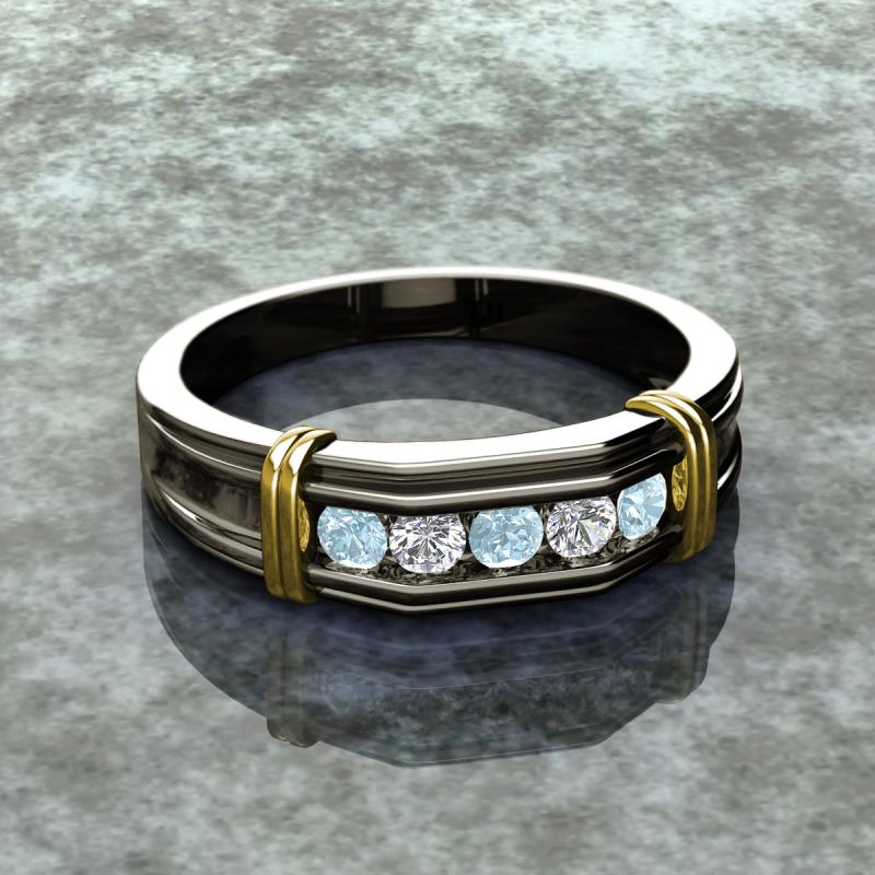 0.44 ctw Round 5 Aquamarine and Natural Diamond (3 mm) using Channel setting Men Wedding Band in 18K Gold More Details ...