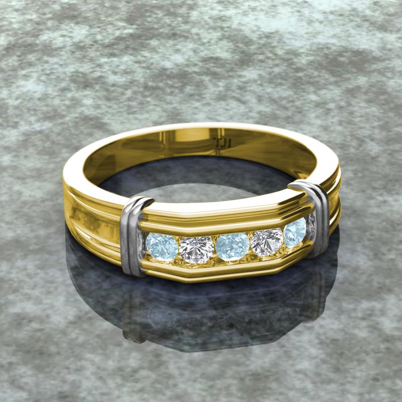 0.44 ctw Round 5 Aquamarine and Natural Diamond (3 mm) using Channel setting Men Wedding Band in 10K Yellow Gold More Details ...