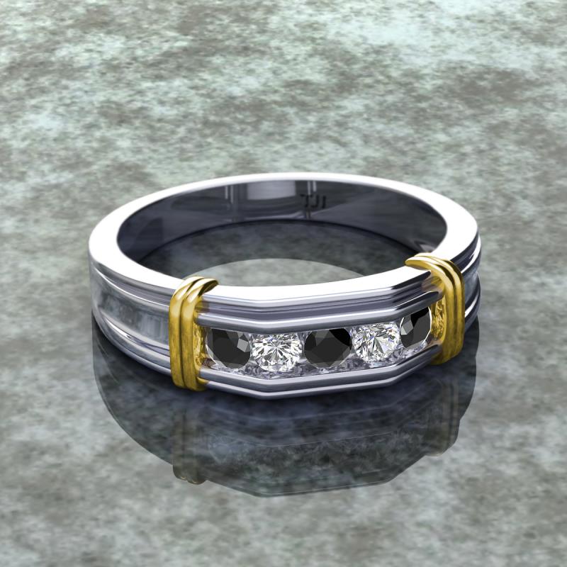 0.53 ctw Round 5 Black Diamond and Natural Diamond (3 mm) using Channel setting Men Wedding Band in 18K White Gold More Details ...
