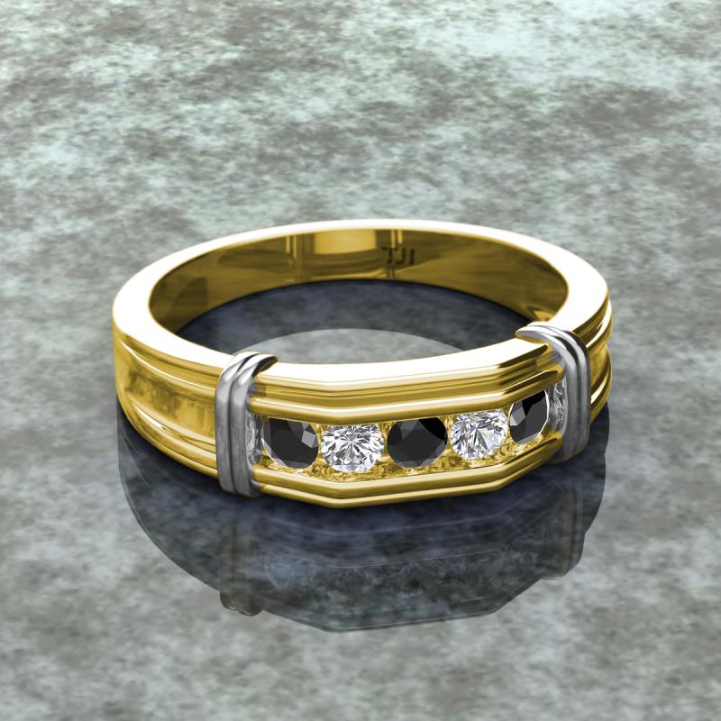 0.53 ctw Round 5 Black Diamond and Natural Diamond (3 mm) using Channel setting Men Wedding Band in 10K Yellow Gold More Details ...