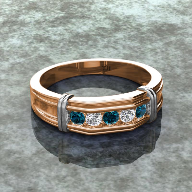 0.50 ctw Round 5 Blue Diamond and Natural Diamond (3 mm) using Channel setting Men Wedding Band in 18K Rose Gold More Details ...