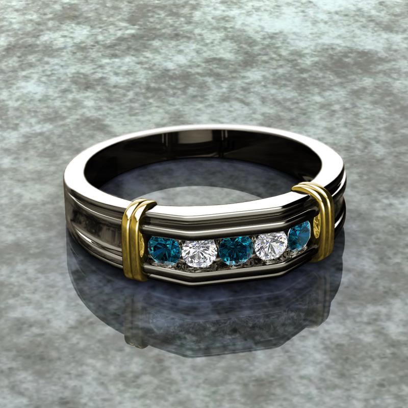 0.50 ctw Round 5 Blue Diamond and Natural Diamond (3 mm) using Channel setting Men Wedding Band in 18K Gold More Details ...