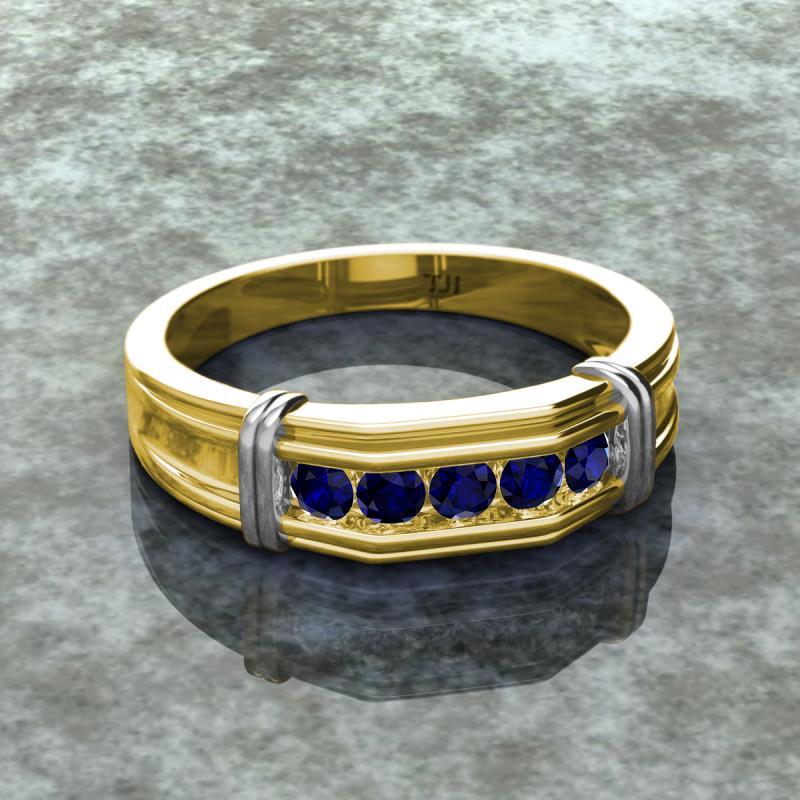 0.60 ctw Round 5 Blue Sapphire (3 mm) using Channel setting Men Wedding Band in 14K Yellow Gold More Details ...