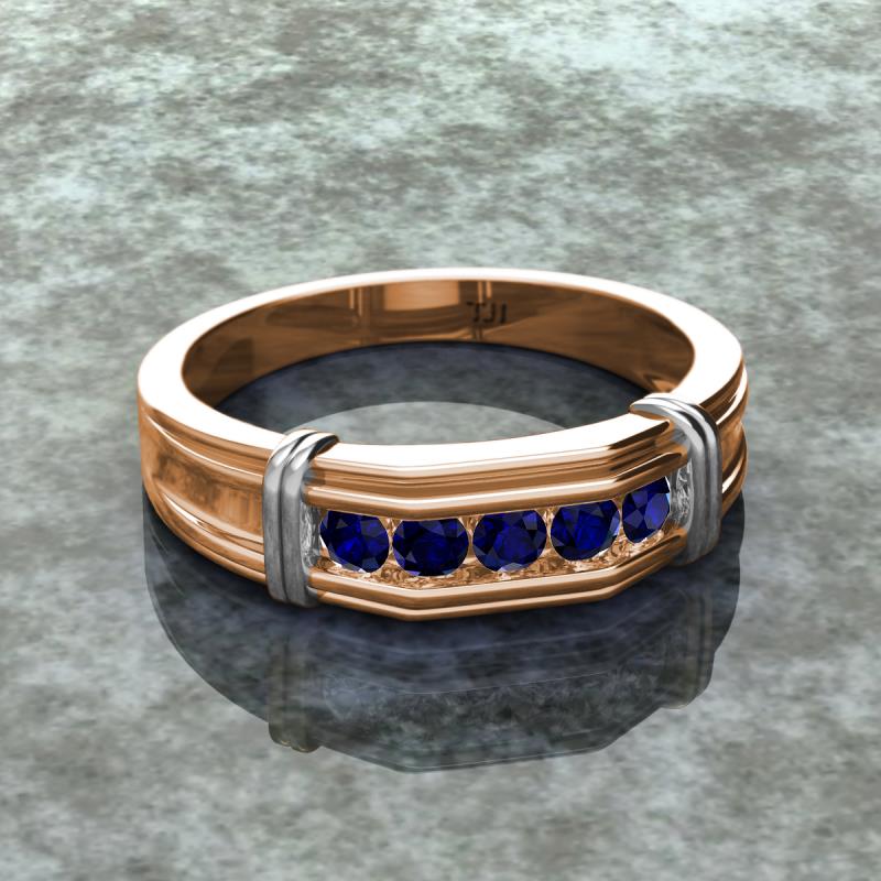 0.60 ctw Round 5 Blue Sapphire (3 mm) using Channel setting Men Wedding Band in 18K Rose Gold More Details ...
