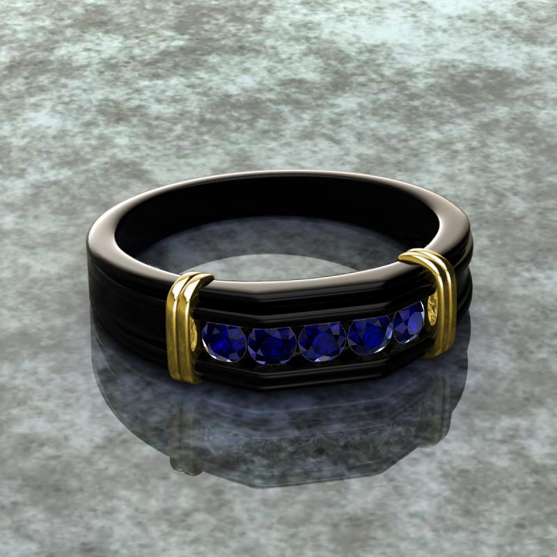 0.60 ctw Round 5 Blue Sapphire (3 mm) using Channel setting Men Wedding Band in 14K Black Gold More Details ...