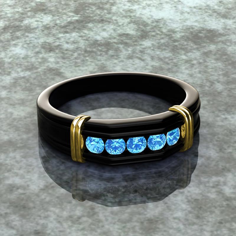 0.45 ctw Round 5 Blue Topaz (3 mm) using Channel setting Men Wedding Band in 18K Black Gold More Details ...
