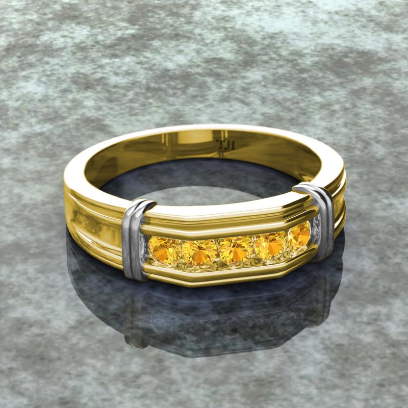 0.40 ctw Round 5 Citrine (3 mm) using Channel setting Men Wedding Band in 18K Yellow Gold More Details ...