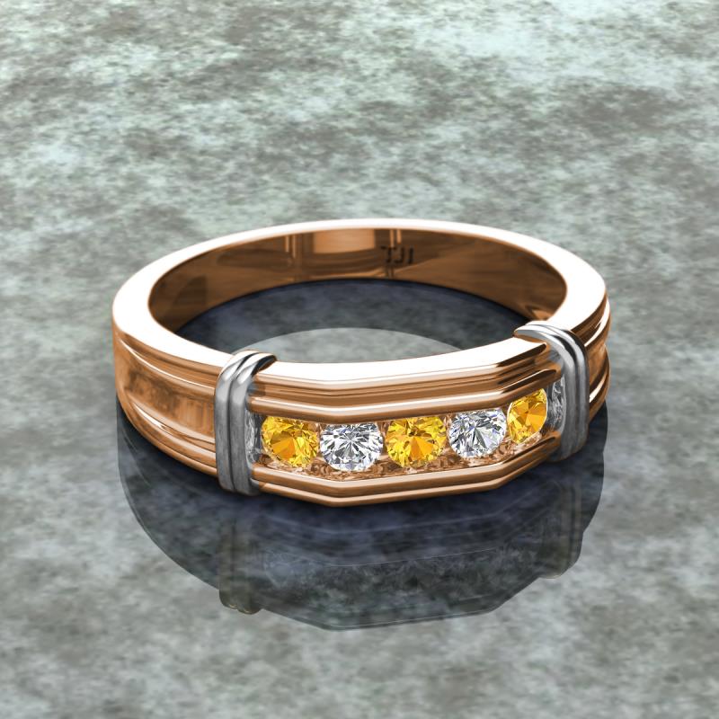0.44 ctw Round 5 Citrine and Natural Diamond (3 mm) using Channel setting Men Wedding Band in 18K Rose Gold More Details ...