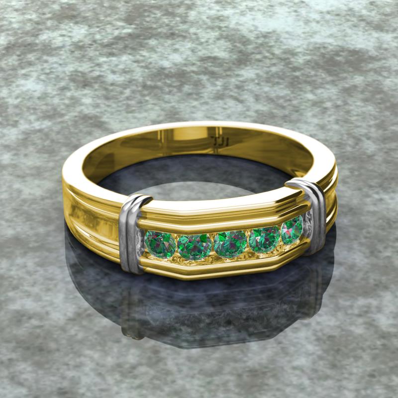 0.60 ctw Round 5 Created Alexandrite (3 mm) using Channel setting Men Wedding Band in 14K Yellow Gold More Details ...