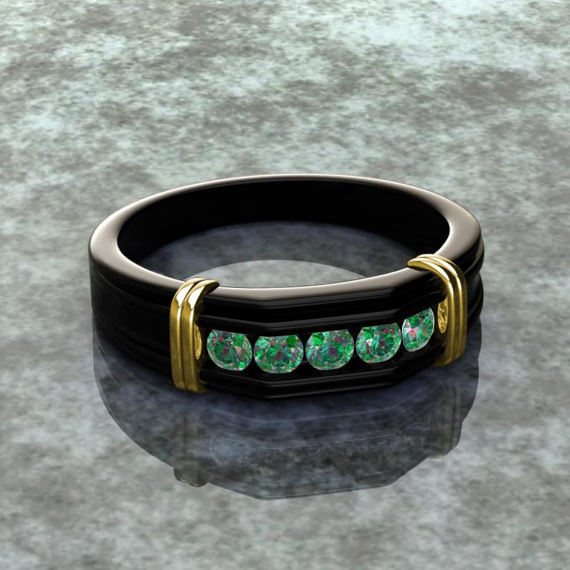 Enrich your look with the gleaming brilliance of Five Created Alexandrite showcased in this channel-set ring. Crafted in 14K Black Gold, it ensures a comfortable daily wear experience while emanating refined luxury.