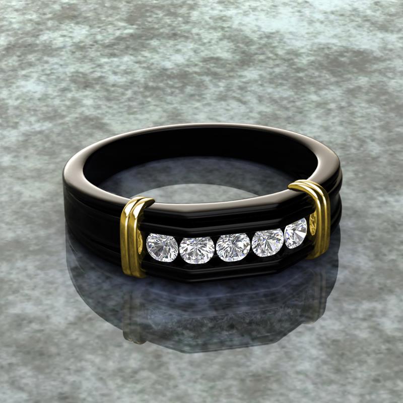 Enrich your look with the gleaming brilliance of Five Diamond showcased in this channel-set ring. Crafted in 14K Black Gold, it ensures a comfortable daily wear experience while emanating refined luxury.