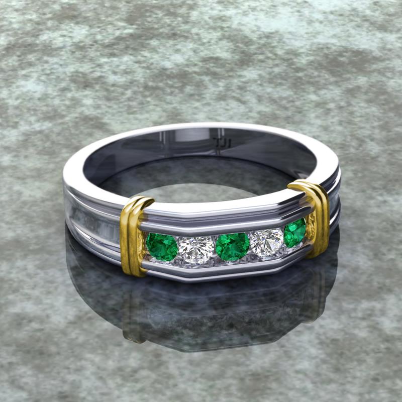0.50 ctw Round 5 Emerald and Natural Diamond (3 mm) using Channel setting Men Wedding Band in 14K White Gold More Details ...
