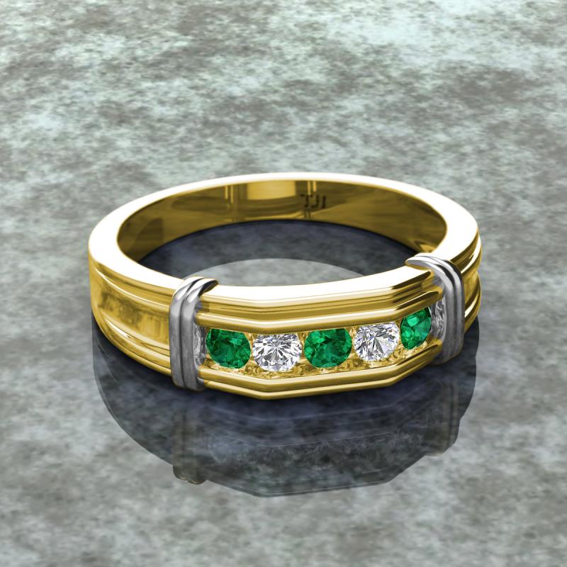 0.50 ctw Round 5 Emerald and Natural Diamond (3 mm) using Channel setting Men Wedding Band in 14K Yellow Gold More Details ...