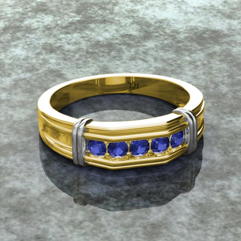 0.40 ctw Round 5 Iolite (3 mm) using Channel setting Men Wedding Band in 18K Yellow Gold More Details ...