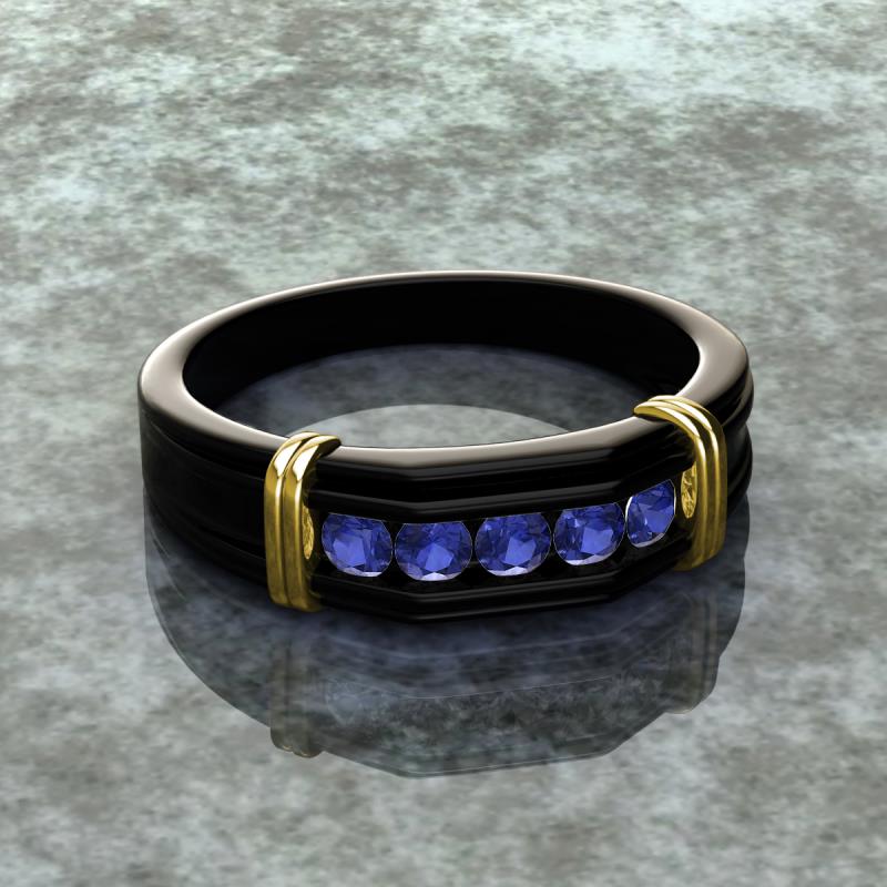 0.40 ctw Round 5 Iolite (3 mm) using Channel setting Men Wedding Band in 18K Black Gold More Details ...