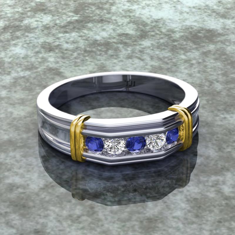 0.44 ctw Round 5 Iolite and Natural Diamond (3 mm) using Channel setting Men Wedding Band in 14K White Gold More Details ...