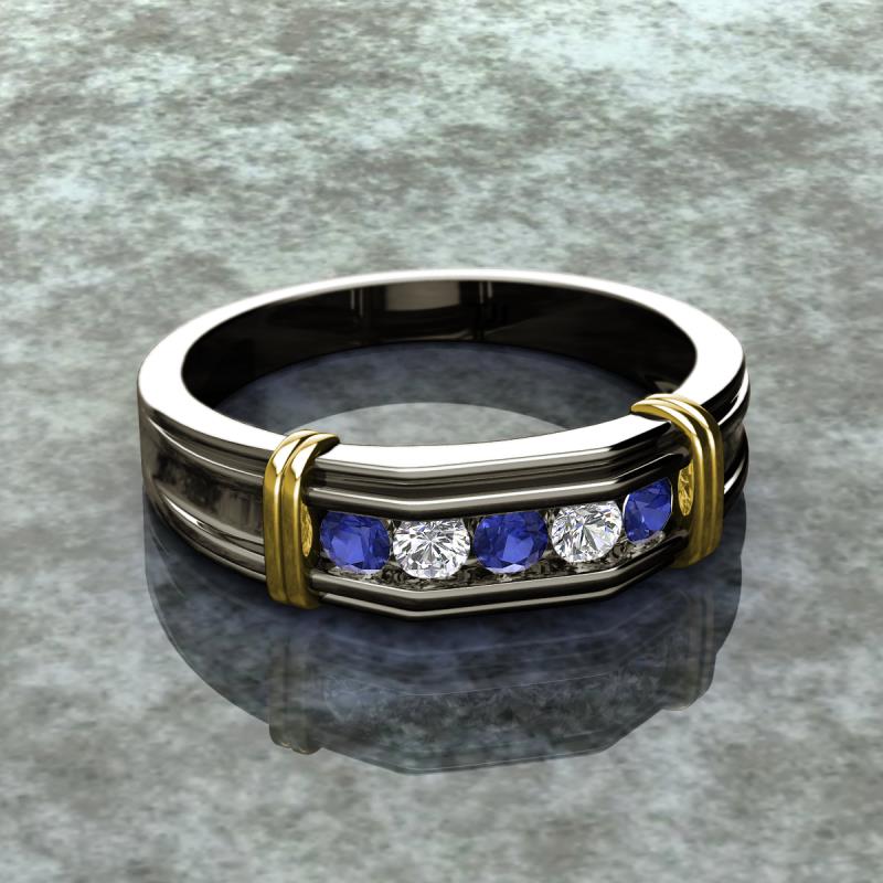 0.44 ctw Round 5 Iolite and Natural Diamond (3 mm) using Channel setting Men Wedding Band in 18K Gold More Details ...