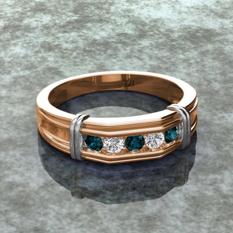0.53 ctw Round 5 London Blue Topaz and Natural Diamond (3 mm) using Channel setting Men Wedding Band in 14K Rose Gold More Details ...