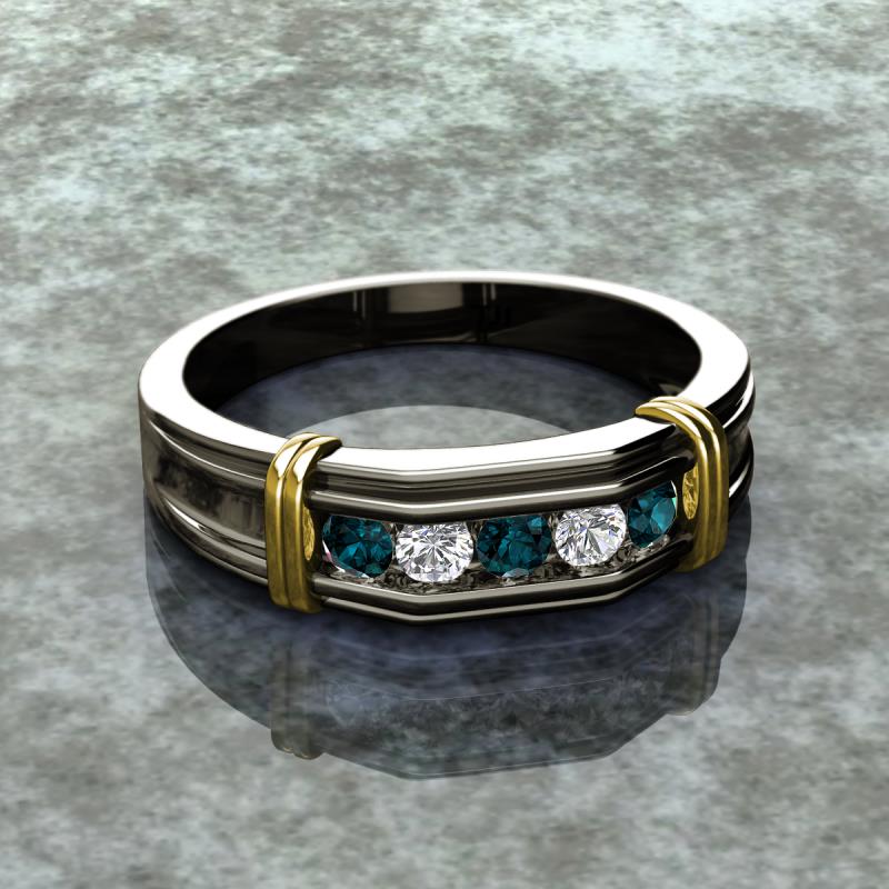 0.53 ctw Round 5 London Blue Topaz and Natural Diamond (3 mm) using Channel setting Men Wedding Band in 14K Gold More Details ...