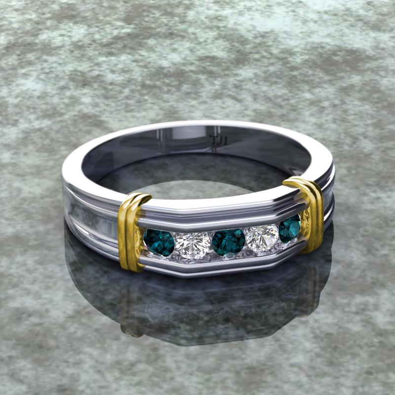 0.53 ctw Round 5 London Blue Topaz and Natural Diamond (3 mm) using Channel setting Men Wedding Band in 10K White Gold More Details ...