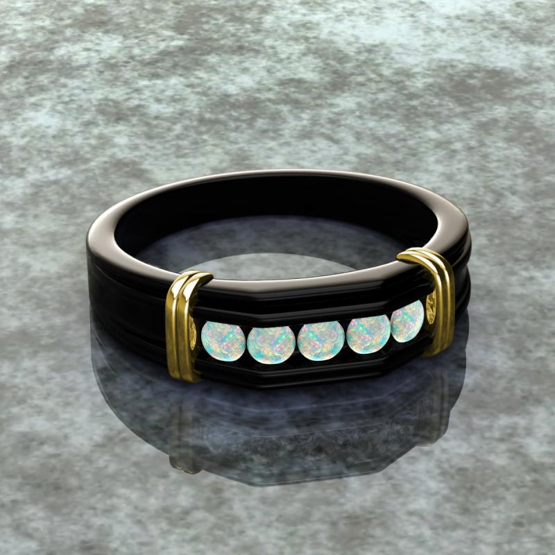 0.30 ctw Round 5 Opal (3 mm) using Channel setting Men Wedding Band in 18K Black Gold More Details ...
