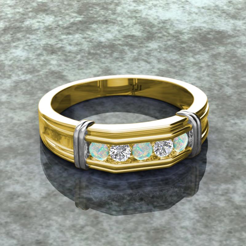 0.38 ctw Round 5 Opal and Natural Diamond (3 mm) using Channel setting Men Wedding Band in 14K Yellow Gold More Details ...