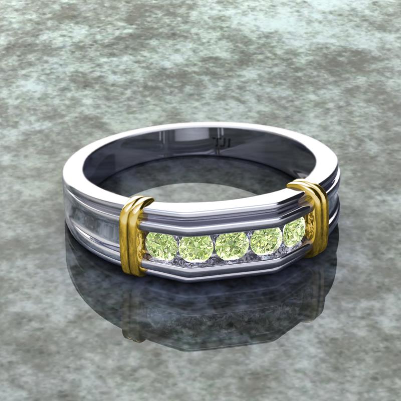 0.58 ctw Round 5 Peridot (3 mm) using Channel setting Men Wedding Band in 14K White Gold More Details ...