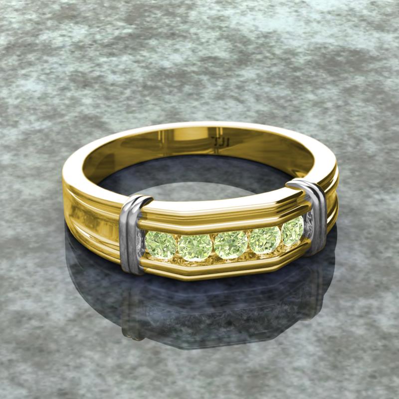 0.58 ctw Round 5 Peridot (3 mm) using Channel setting Men Wedding Band in 14K Yellow Gold More Details ...